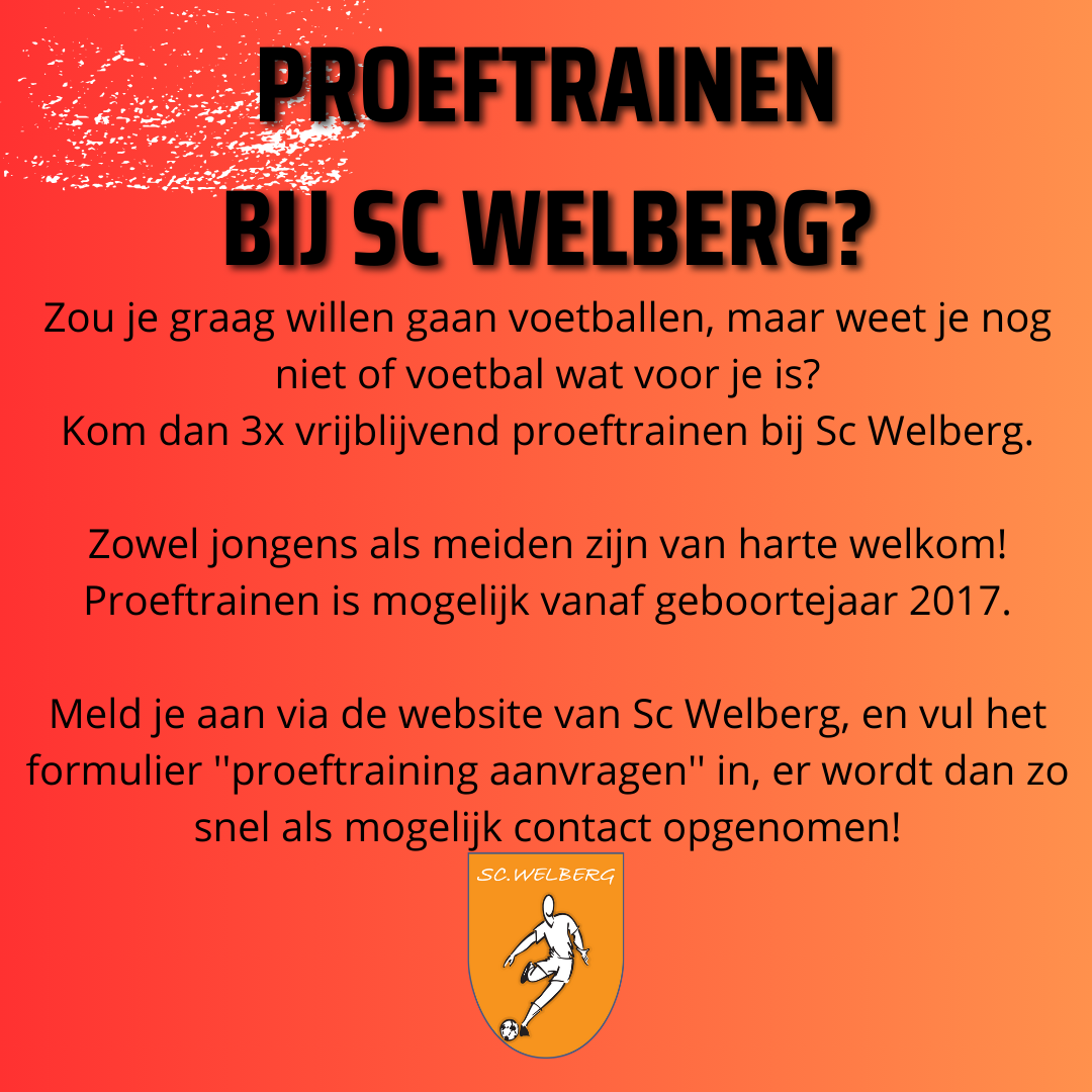 Kom dan 3x vrijblijvend proeftrainen bij Sc Welberg.